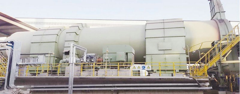 運(yùn)行中的圓筒混料機(jī)